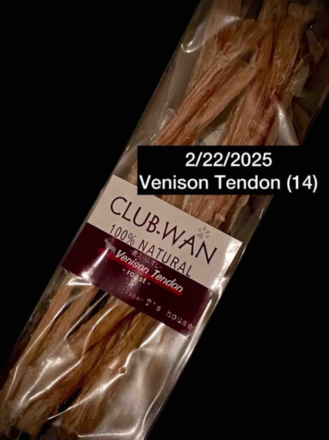 2/22/2025⭐️ Venison Tendon (14):「 鹿の筋ジャーキー 」鹿にもアキレスと筋の2種類の噛む系ジャーキーがありますがアキレスは短く、長いのはこの筋···
