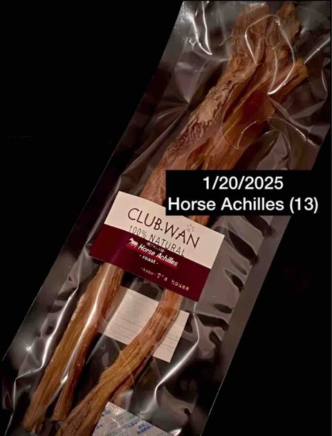 1/20/2025⭐️ Horse Achilles (13):「 馬のアキレス・ジャーキー 」噛む系おやつの馬アキレスです骨系が無理な時には、この筋の硬さになります骨系の様···